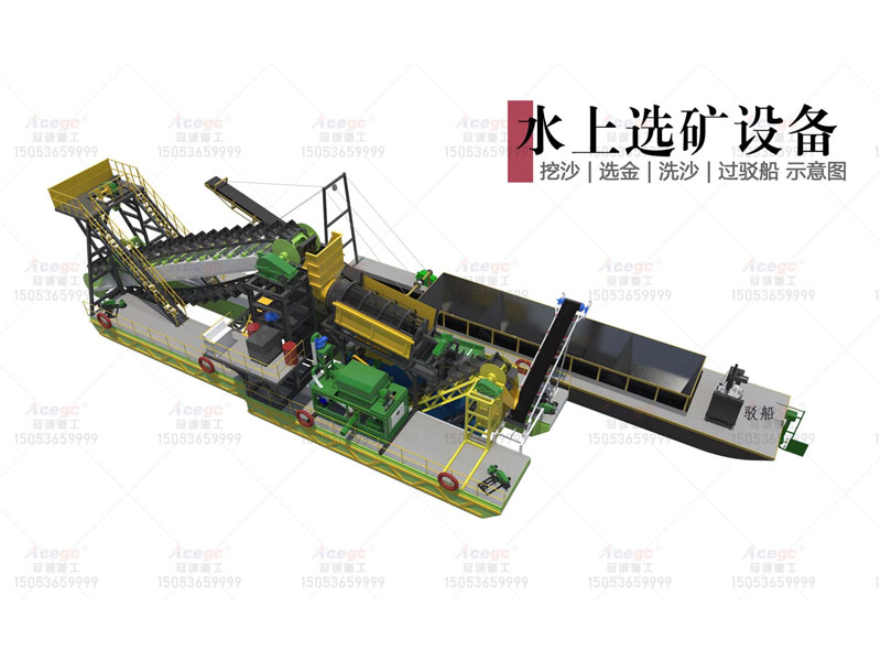 - 淘金船其工作原理基于金礦的比重差異和物理特性