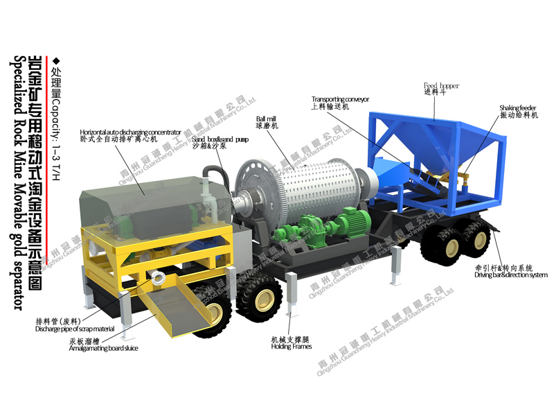 此款為移動球磨機選礦設備,為青州冠誠重工機械有限公司獨立研發,球磨機是物料被破碎之后,再進行粉碎的關鍵設備。